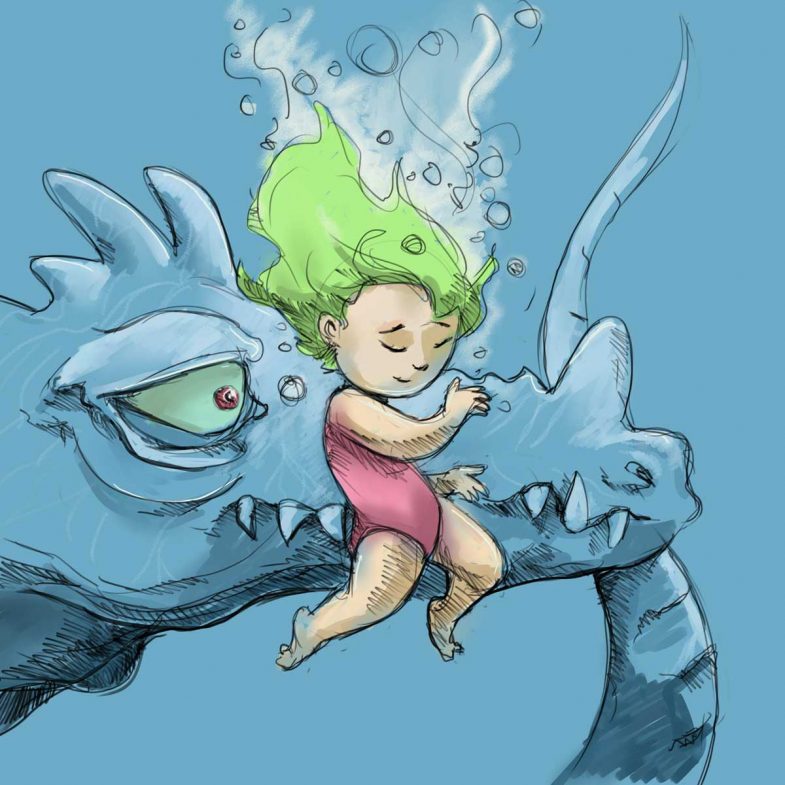 The SCBWI draw this prompt is PEACH FUZZ (Pantone 13-1023). Always wanted to draw a giant flying pig and their baby. Now, I finally have had the chance.